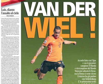Il Romanista – Primo colpo, preso van der Wiel  (Zucchelli-Cagnucci)