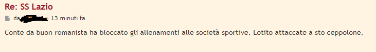 Ma s'è accorto che li ha bloccati anche ai trigorioti che avrebbero seguito Lotito a ruota? Sono talmente stupidi che per fare un dispetto alla Lazio si stanno scavando la fossa senza rendersene conto. Com'era la storia del marito e dei suoi testicoli?