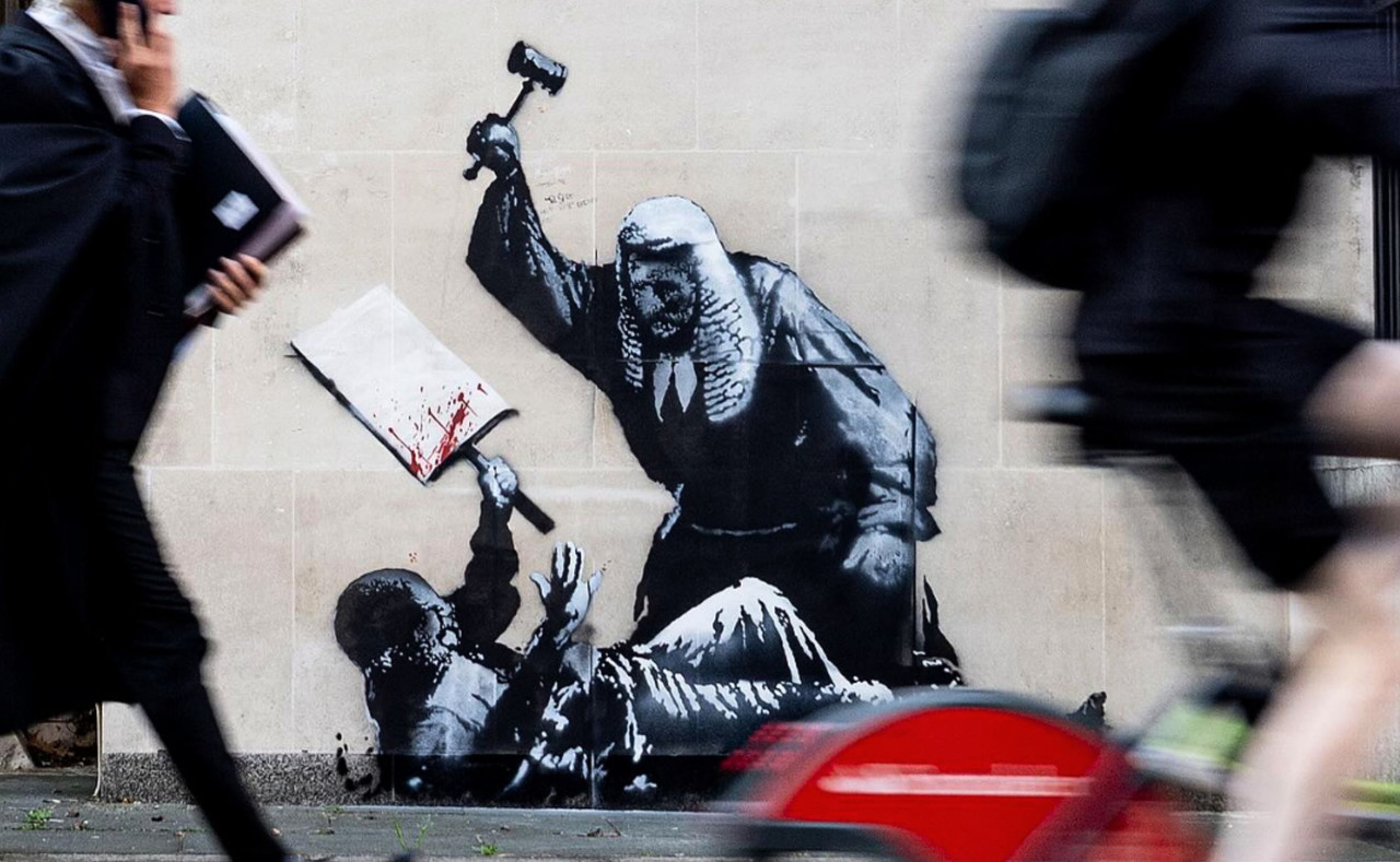 Londra, l'opera shock di Banksy del giudice che picchia un manifestante verrà rimossa